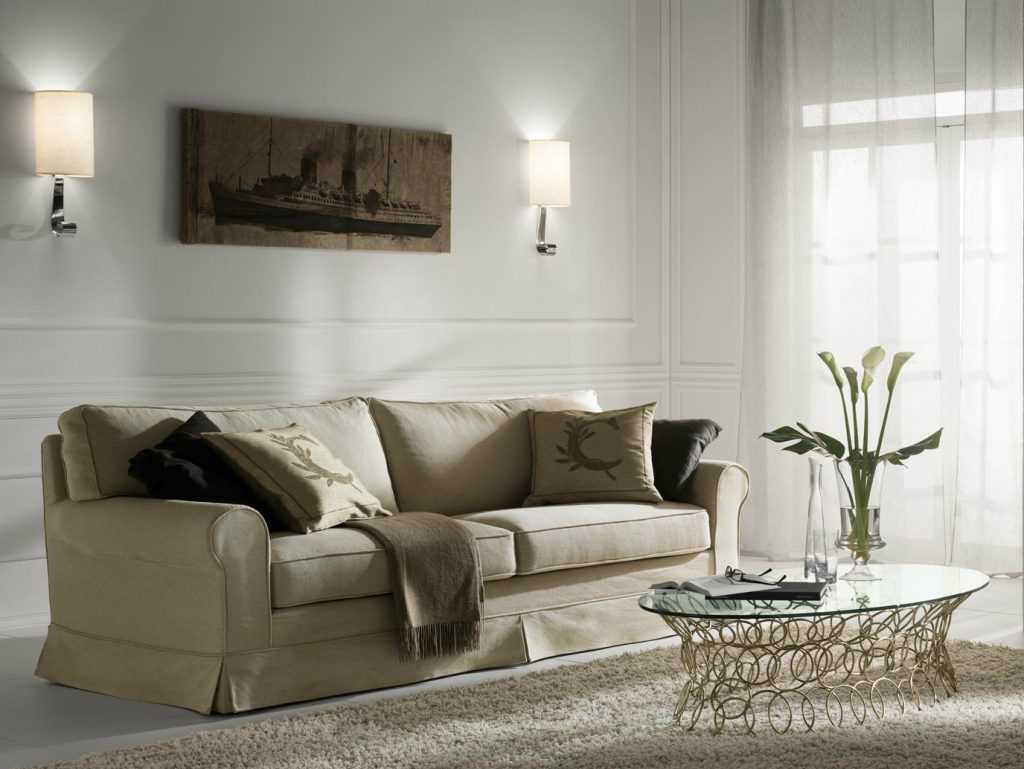 Обычно бра размещаются над местами для отдыха, количество светильников и мощность встроенных в них ламп зависит от размеров комнаты. Если потолок невысокий, то направление света должно быть направлено вверх. Для разделенной зоны следует выбирать бра с ярким светом. Более тусклый свет можно выбрать для установки над диваном, чтобы он не слепил глаза.