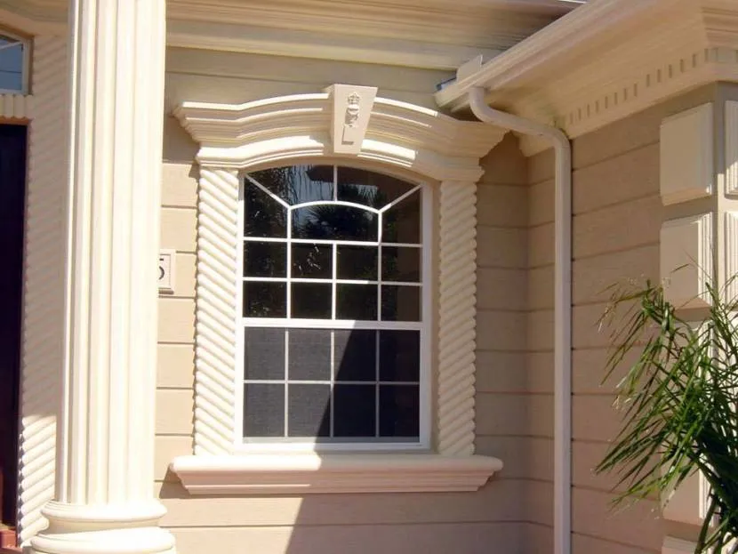 Декоративное обрамление окон состоит из разных конструктивных элементов. Они не только придают фасаду торжественность, наделяют его индивидуальностью; многие детали одновременно выполняют техническую функцию. В современной архитектуре частного строительства используются следующие элементы оконного декора: