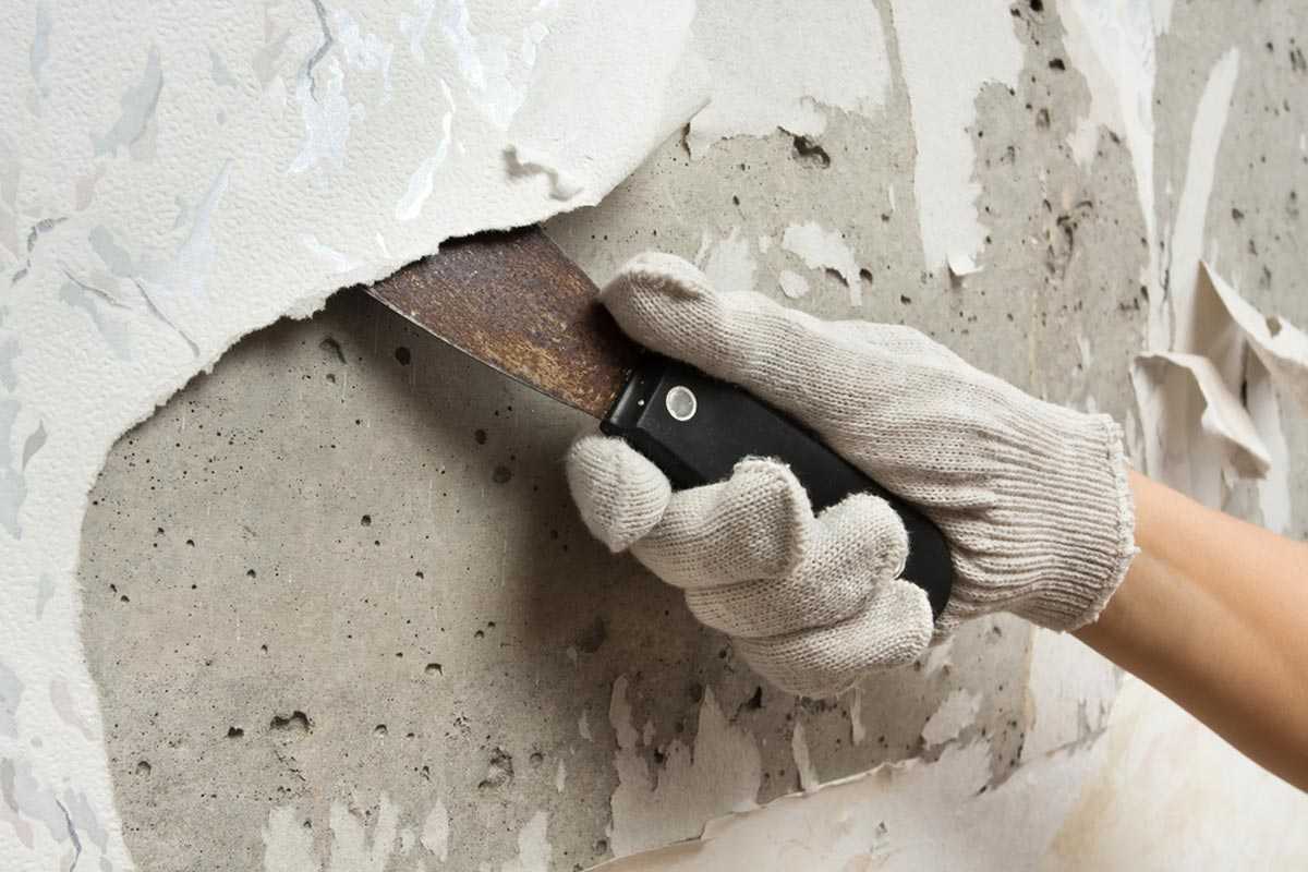 Начинается всё, как и в подготовке к покраске, с удаления с поверхности остатков краски, обоев и всего лишнего.