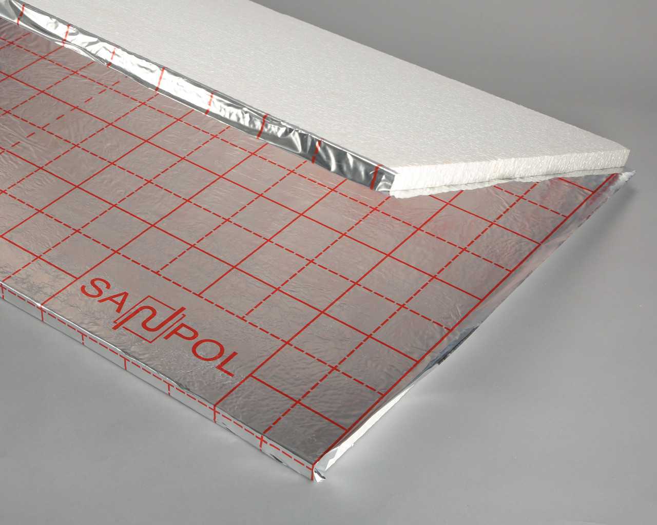 Выпускается в основном под систему «теплого пола». Здесь слой фольги отражает тепло вверх, в помещение, предотвращая прогрев плит перекрытия или чернового пола, уложенного на грунт.