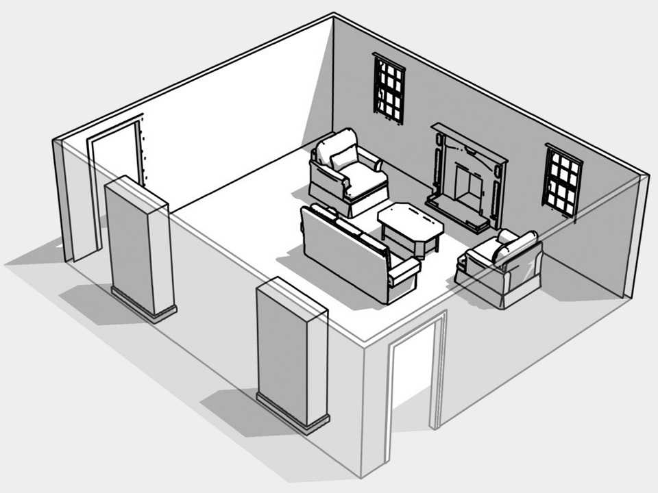 - выбирается фокусная точка (камин, панорамное окно, домашний кинотеатр);