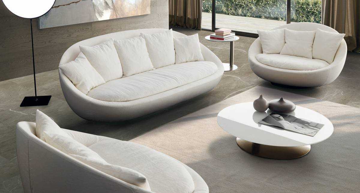 Такая планировка подходит для просторных комнат, потому что является не самой рациональной. Однако, если ваша цель — организовать уютную зону отдыха — круг подходит лучше всего.