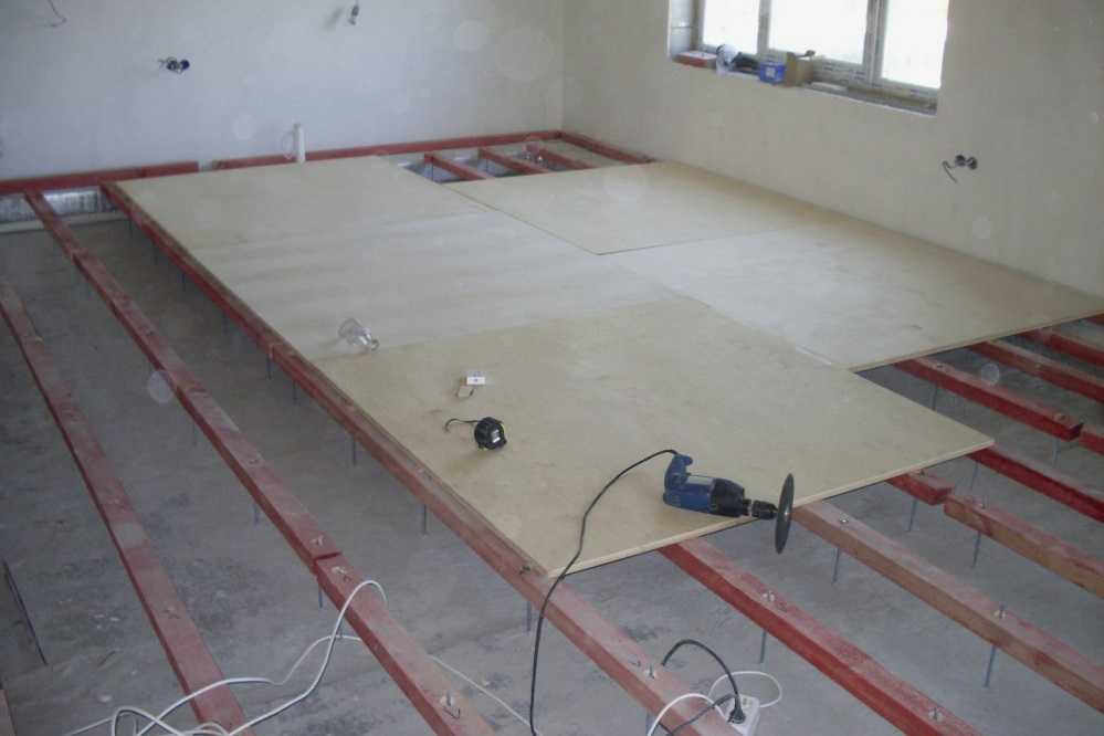 - фанерные листы толщиной не менее 6 мм укладываются на пол;