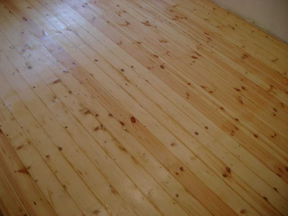 Поверх чернового пола укладываются лаги, а на них уже стелется чистовой пол. Его делают из сосновых или еловых досок. Сами доски покрываются бесцветным лаком, что способствует повышению их долговечности и улучшает внешний вид. Между лагами можно уложить звукоизоляцию и понизить уровень шума от нижних соседей. Там же укладывают и теплозоляцию. Если материал покрытия пола сохранился в хорошем состоянии, то его можно не менять, а уложить аккуратно обратно. Только после этого заделать оставшиеся щели.