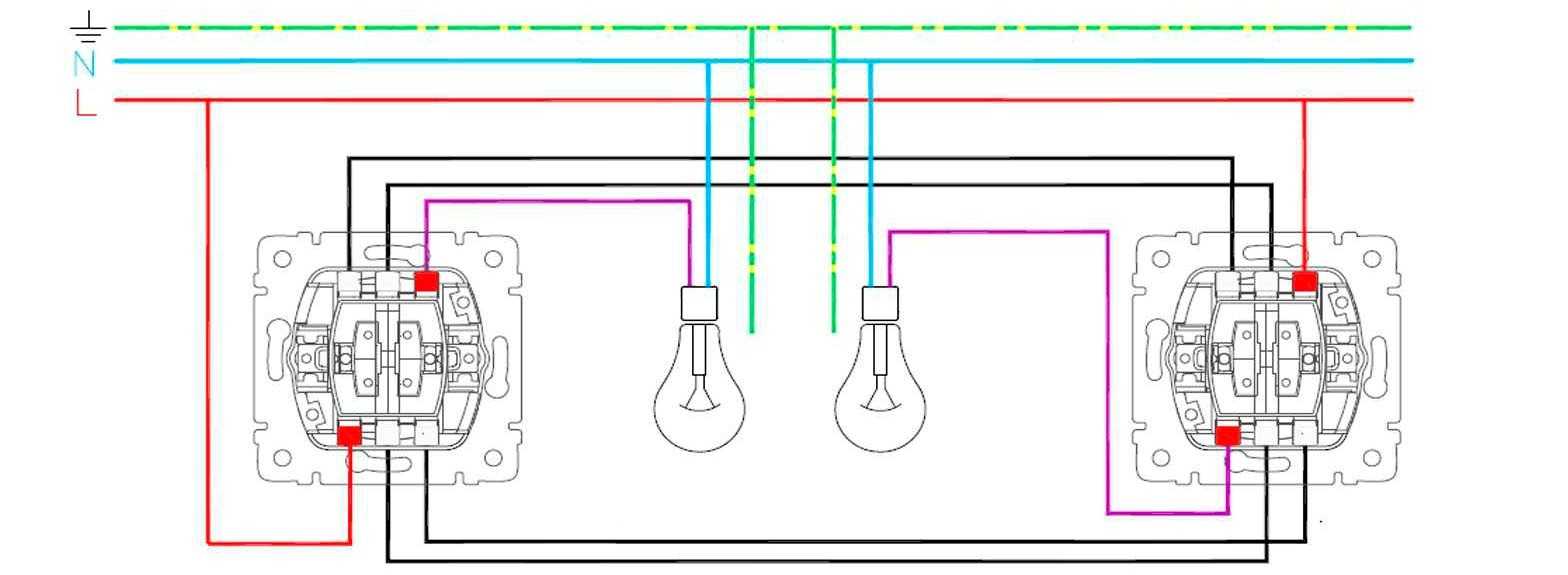 Порядок установки проходных выключателей на 2 точки: схема подключения