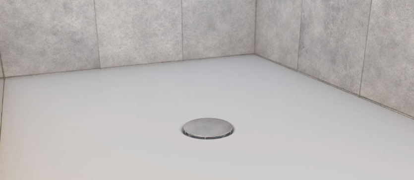 Низкие кабины всегда монтируются на цементную стяжку, а латунный или хромированный трап в этом случае требуется устанавливать под углом.