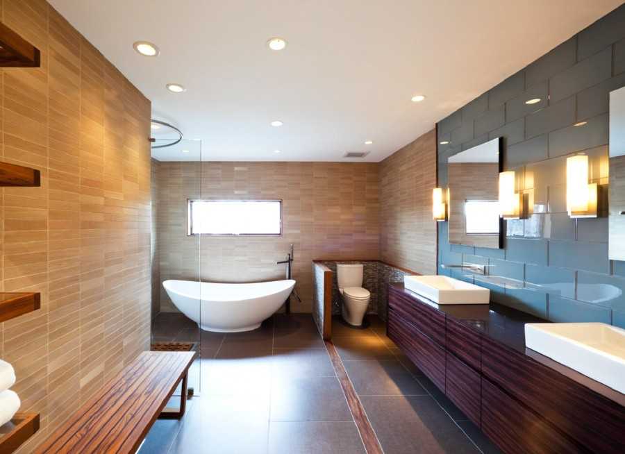 Дизайн ванной — современные отделочные материалы, оборудование и сантехника для интерьера, освещение ванной комнаты. 95 фото дизайна ванных комнат в современном стиле