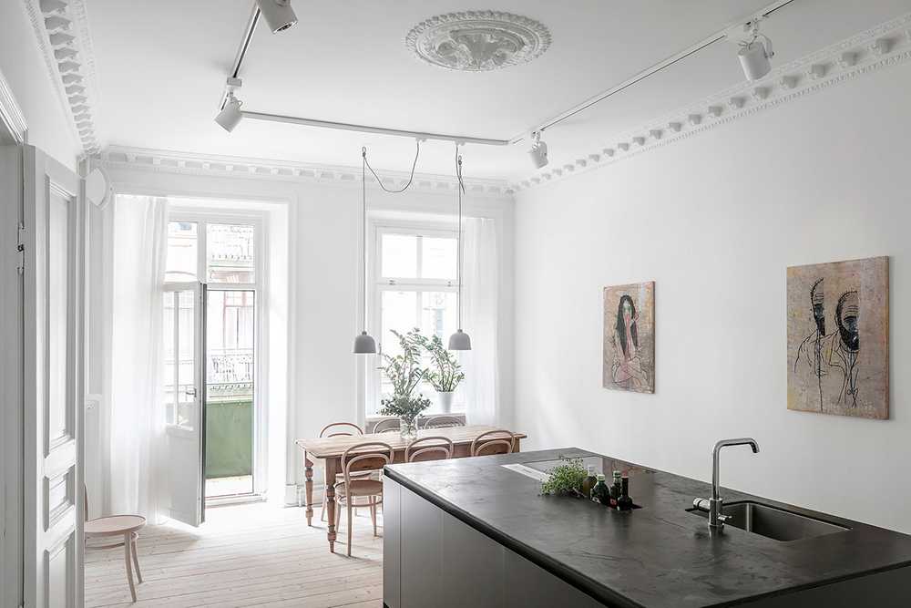 Помимо равномерного освещения светильниками, хорошо бы разместить светильник над столовой группой. Это может быть подвесной светильник или бра.