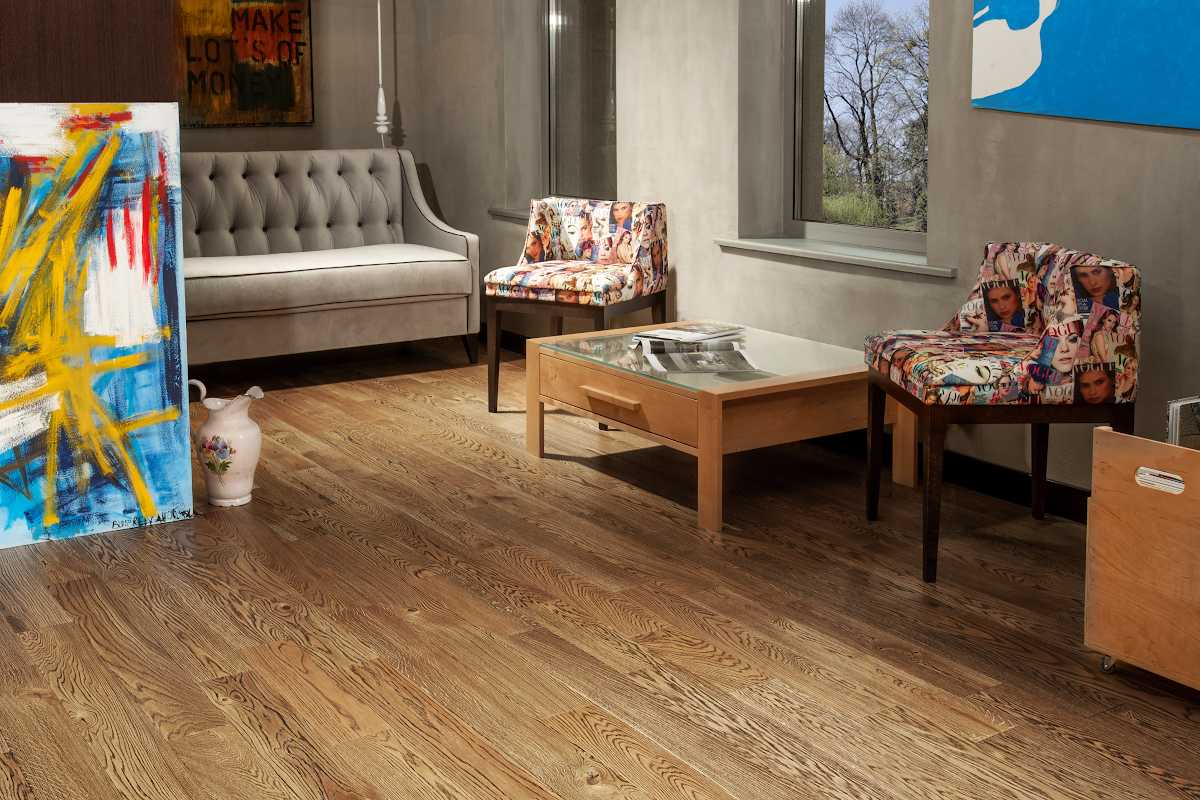 Особенной популярностью пользуется белый ясень с розовым и серым, а также песочно-желтым и бежевым отливами. Широкая цветовая гамма позволяет экспериментировать с напольным покрытием, применяя его в рамках различных интерьерных направлений. Эффектно выглядит интерьерная доска в квартире больших размеров. Материал подчеркивает изысканность и роскошь просторных холлов, гостиных и спален.