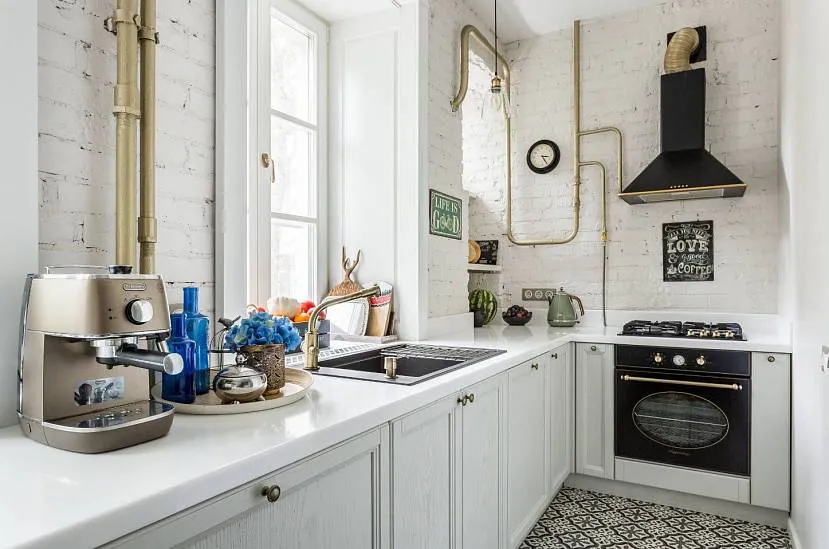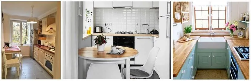 Существует несколько способов расположения основного набора мебели в маленькой кухне: