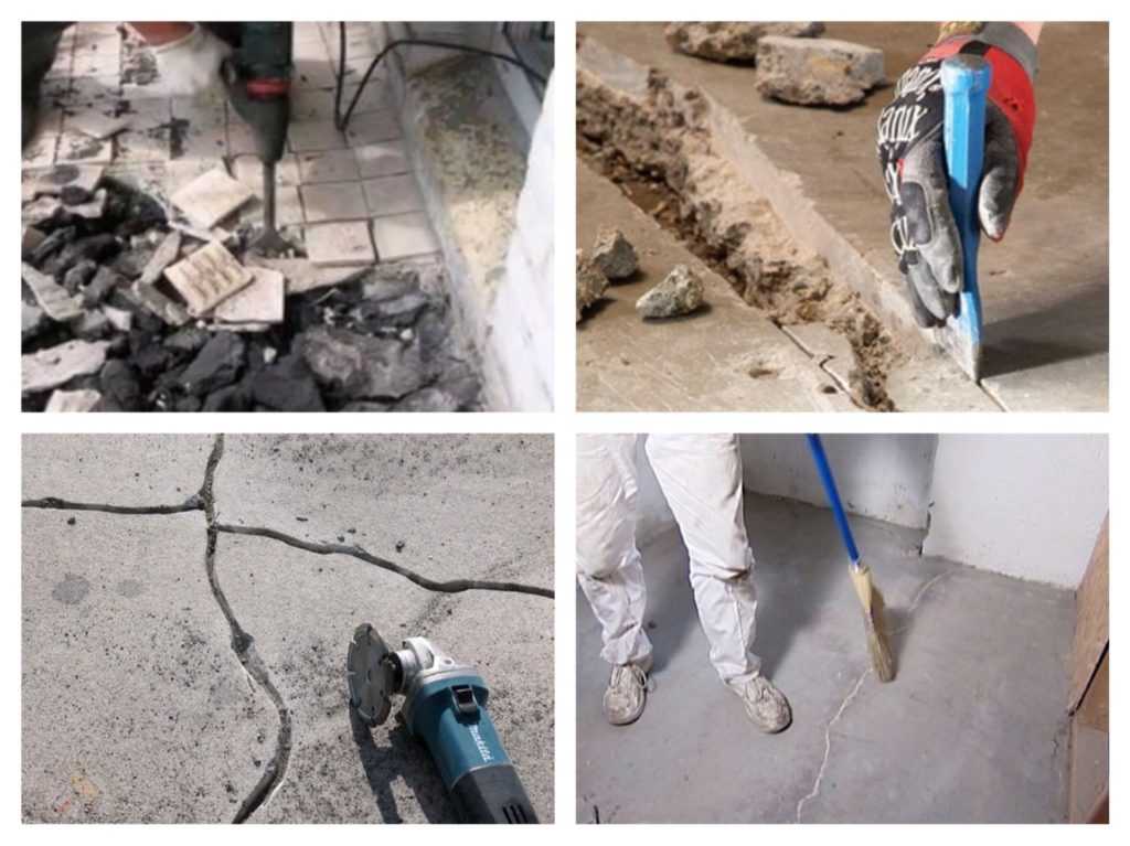 - Ремонт основания. Все щели и трещины очищаются, расшиваются и заполняются ремонтным раствором. Это же касается зазоров в местах примыкания стен к горизонтальным перекрытиям (пол и потолок).